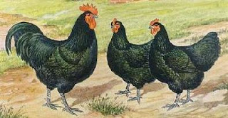 Colour of Australorps is predominately black, with a 'beetle green' sheen to the feathers in sunlight, but there are other colours as well, including blue. They come in standard size and bantam and their temperament is tame and shy. They're great chickens for backyard laying birds.
