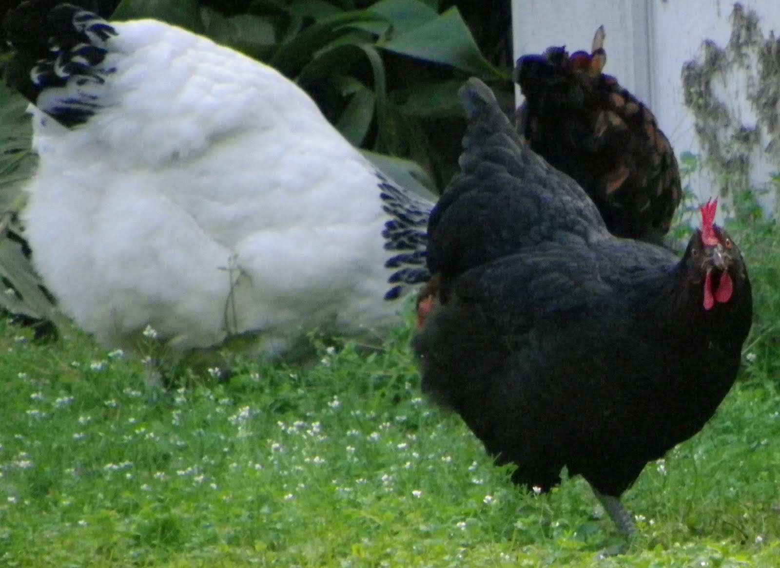 The photo at right is my favourite picture of Boss. She was caught in the act of leading her coop mates into the out of bounds driveway. If it is possible for a chook to look guilty, then this photo is it!